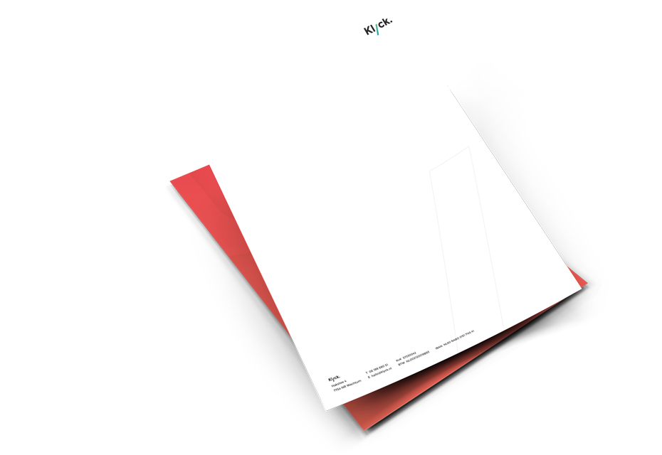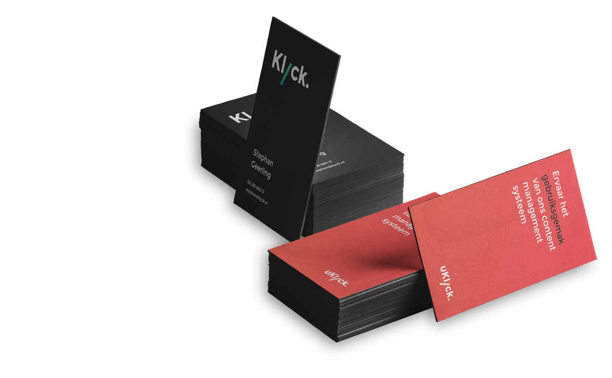 Door consequent jouw huisstijl te hanteren creëert Klyck samen met jou een herkenbare uitstraling die op termijn direct aan jouw bedrijf zal worden gelinkt. Door de huisstijl ook op alle andere uitingen (website, flyers, video’s en animaties, brochures, beurswanden, gevelreclame, et cetera) door te voeren versterk je deze uitstraling en daarmee ook jouw herkenbaarheid.